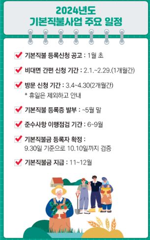 2024년 기본형 공익직불금 비대면 신청 기간은 2.1 ~ 2. 29 일까지입니다.